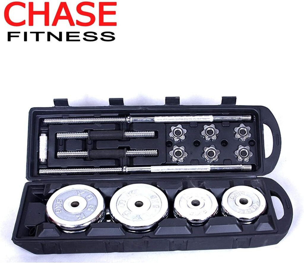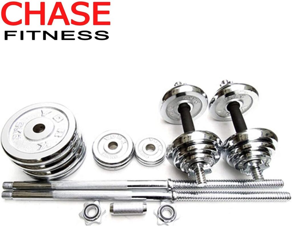 Chase Fitness 50kg Barbell Dumbbell Chrome Cast Iron Home Gym Weight Set