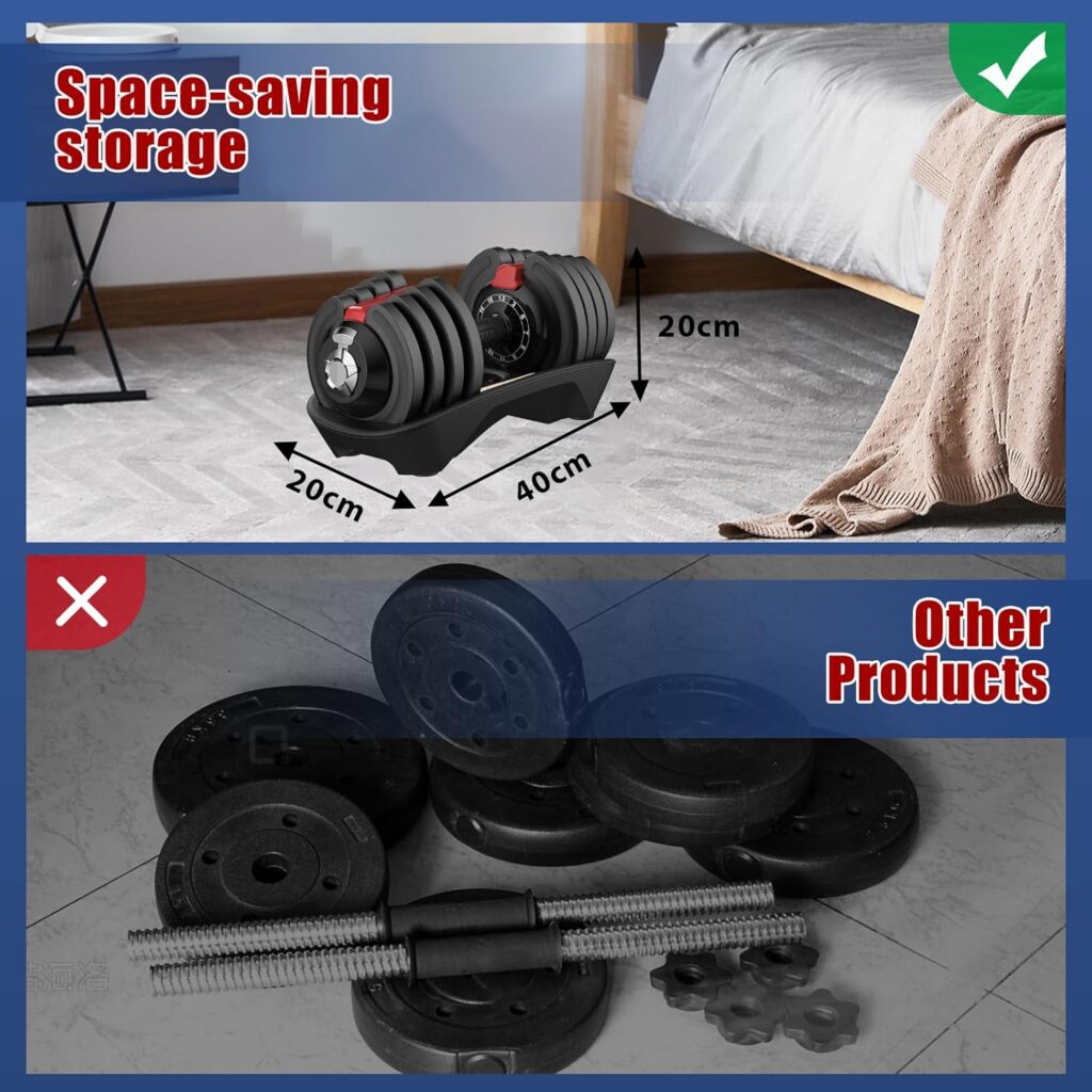 DH FitLife 18KG/24KG Adjustable Dumbbells with 12 Weights in 1, Dumbbell Set for Men and Women, Space-Saving Free Weights for Home Gym & Strength Training