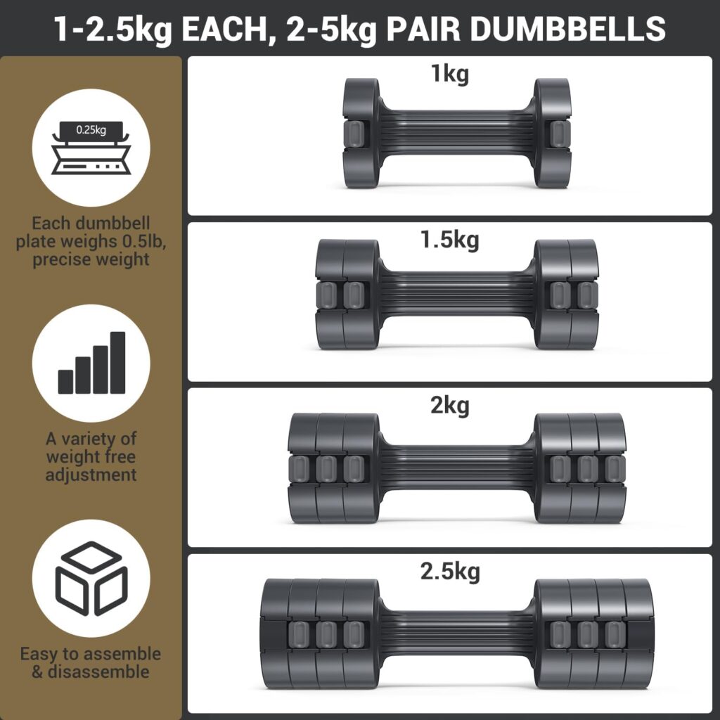 Sportneer Dumbbells Set Women: Each 1kg/1.5kg/2kg/2.5kg, 4-in-1 Weights Dumbbells Set, Weights for Women, Adjustable Dumbbell Pair for Home Gym Fitness Training