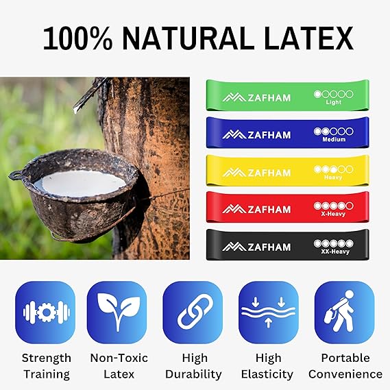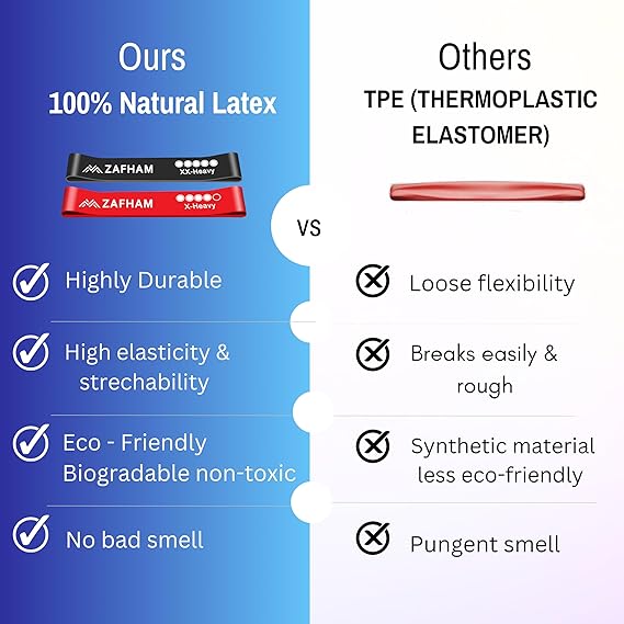 • 🌱 100% Natural Latex – Skin-Safe & Durable Crafted from premium-quality, eco-friendly natural latex, our bands provide smooth, consistent tension with excellent rebound performance. Non-toxic, snap-resistant, and gentle on skin—ideal for daily workouts without the discomfort of rolling or sliding.