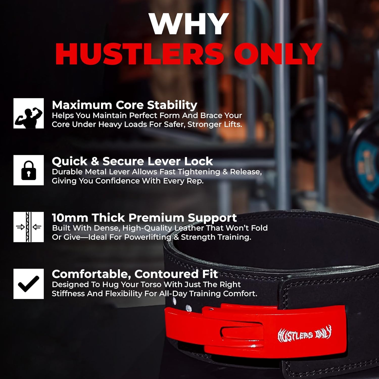 HUSTLERS ONLY Weight Lifting Lever Belt 10mm Thick – Cowhide Pro Powerlifting Belt for Heavy Deadlifts & Squats Suede Leather Gym Belt for Back Support Men & Women